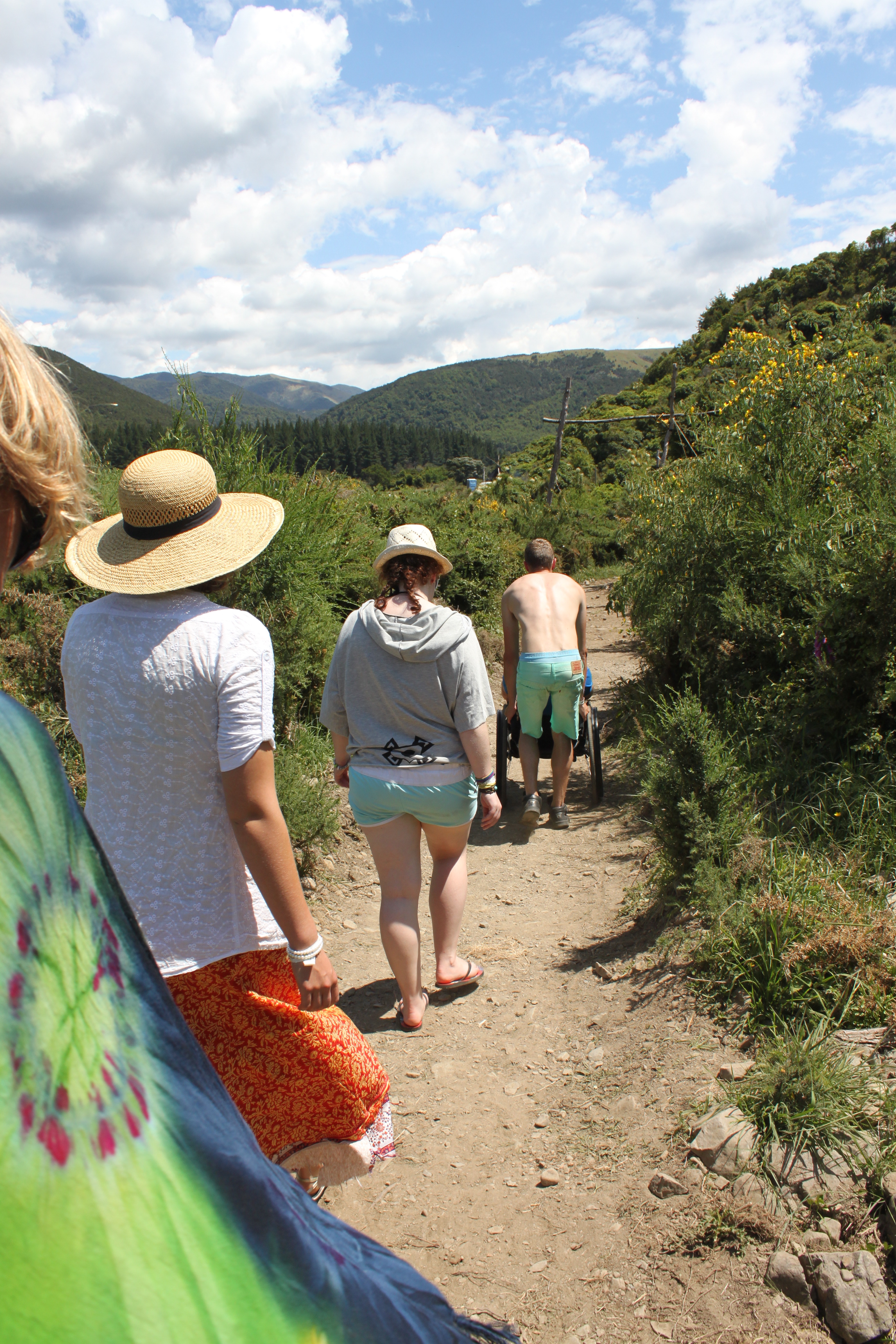 Trooping down to mainstage, from the front: Azwhayn, Simon, Katie, Quoyah and Marijn with Lauren coming up behind.