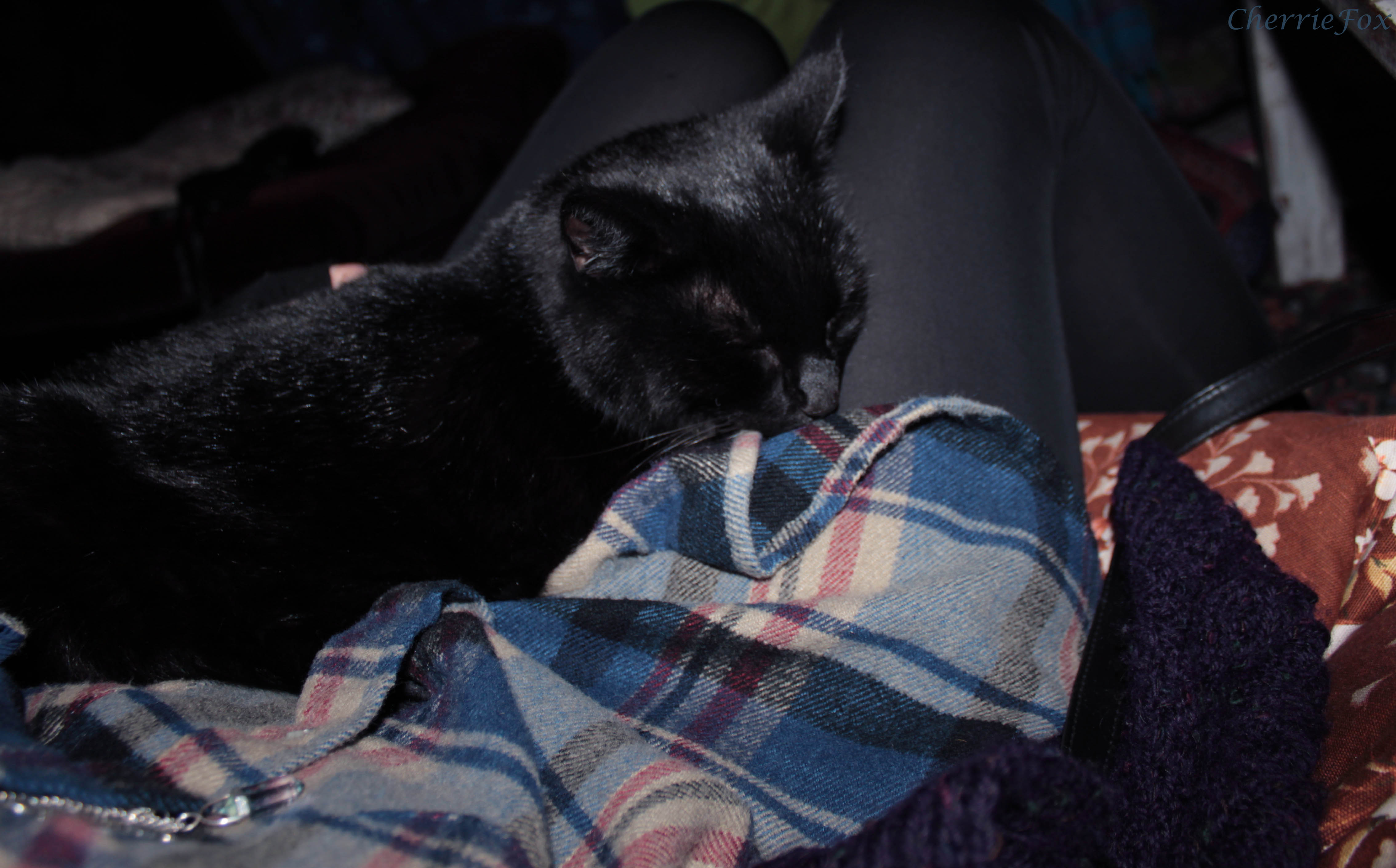 Cat in a lap, a happiest cat.