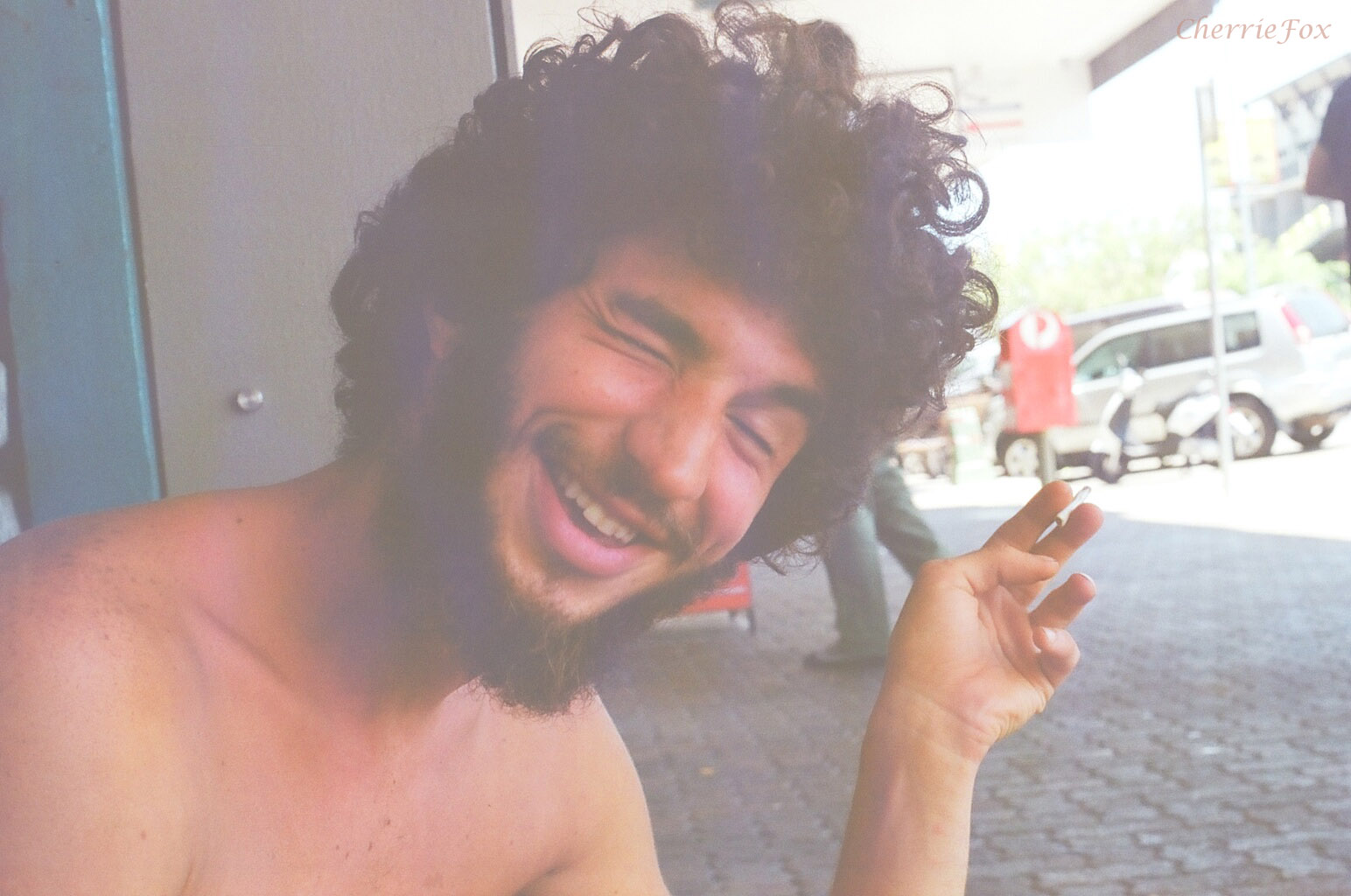 Ussef with footpath coffee and cigarettes.